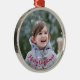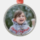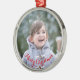Skapa din egen anpassningsbar, personlig, vackra elegant, röda skript / typografi, runda figurer av helgdag silver färgad metall som är ett ornament, med vackra röda band för sin visning. Om du vill anpassa kan du lägga till din favoritfamilj / ditt favoritpar / ditt favoritpar / ungar / husdjur / foto från bröllop och skriva in texten / hälsning / namn / datum. När du lägger till/utformar kan du hela tiden se en förhandsgranskning av hur du skapar. Skapa en helgdag christmas keepsaké genom att lägga till din bild till din familj, barn och hund. Och om dess första julklappar för ett gift par eller för ett baby - misslyckas inte skapa sitt första julklammerande namn genom att lägga till ett foto av de nyfödda, eller pojke eller flicka. Gör en unik, vacker, speciellare keepsaké julgran/helgdag-dekanter till dekoration för dina nära och kära, nyfödda, barn, baby, mamma, pappa,, make, fru, brud, grav, son, dotter, bror, syster, farfar, farmor, familj och vänner.
