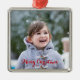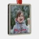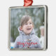 Skapa din egen anpassningsbar, personlig, vackra elegant, röda skript / typografi, fyrkantig form av silver färgad-helgdag-metall, med vackra röda band för sin visning. Om du vill anpassa kan du lägga till din favoritfamilj / ditt favoritpar / ditt favoritpar / ungar / husdjur / foto från bröllop och skriva in texten / hälsning / namn / datum. När du lägger till/utformar kan du hela tiden se en förhandsgranskning av hur du skapar. Skapa en helgdag christmas keepsaké genom att lägga till din bild till din familj, barn och hund. Och om dess första julklappar för ett gift par eller för ett baby - misslyckas inte skapa sitt första julklammerande namn genom att lägga till ett foto av de nyfödda, eller pojke eller flicka. Gör en unik, vacker, speciellare keepsaké julgran/helgdag-dekanter till dekoration för dina nära och kära, nyfödda, barn, baby, mamma, pappa,, make, fru, brud, grav, son, dotter, bror, syster, farfar, farmor, familj och vänner.