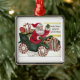 Tillfoga text för att göra detta julprydnadpersonlig. Roliga Santa i en godisbandbil. Tillfoga ditt efternamn eller någon annars.