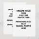 Skapa oförglömliga inbjudningar med vårt enkla verktyg för anpassad design! Perfekt för bröllop, födelsedagar, produktlanseringar eller någon speciell händelse som behöver unika inbjudningar. Välj bland otaliga designer, lägg till dina foton och text, och skapa professionella hemmagjorda inbjudningar som sticker ut. Gå längre än grundläggande inbjudningar med smarta utfällbara inbjudningar eller eleganta tematiska stilar. Vår premiumtryckning säkerställer att dina speciella inbjudningar gör ett fantastiskt första intryck. Snabb frakt får dina anpassade skapelser till dig snabbt, vilket gör evenemangsplaneringen stilfull och stressfri.