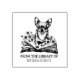 Denna "Från bibliotek" gummistämpel har en chihuahua med en blommig bok och ett anpassat namn.