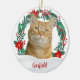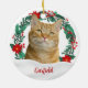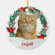 Det här prydnadsämnet har ett foto av husdjur i personligen och namn över julkransens andetag.