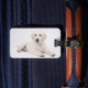 Skapa ditt egna foto hänger lös märkren. Förlägga ett foto från ditt familjfotoalbum för att byta ut mallfotoet. Tillfoga din adress baktill av märkren för att göra den roliga bagagemärkren.