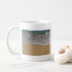 Guld- sandig strand med blåtthavvågar och rum att tillfoga din egna text till denna strandtemadesign! Perfekt för bröllop, årsdagar, födelsedagar, förlovningar, tackkort och mer.