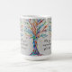Denna dekorativa kaffemugg har ett mosaikträd i regnbågens färger.