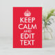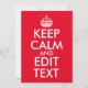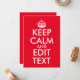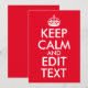 Skapa din egen textparodi på klassiskt mönster "Keep Calm and Carry On". Anpassa den ljusröda bakgrunden färg så att den matchar din speciella händelse. Ändra platshållarinformationen "Behålla Lugn och Redigera text". Typografi av röd och vit personlig eller textdesign.