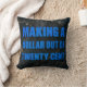 Motiverande "Skapar en dollar ut ur 20 cent"-design i fet blått format över ett plågat, urbana struktur. Hustle mindset, mald kultur, pengasparare, resurskrävande liv, företagskpresenter, gatu-stil-typografi.