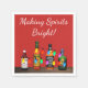 Roligt, juldesign är perfekt för att fira helgdagarna med vänner, familj och cocktails! Utformningen har en överdel av bord med en rad av flaskor i flytande form. Flaskor är alla dekorerade för helgdagarna med strängar av Julgran ljus. Bakgrunden är ett festligt rött färg. Ovanför spriten och julen är ljus text i ett vitt skript som säger Skapar Spirits Bright!