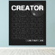 Denna typografidesign har ordet Skapare, och citatet, "Jag är den jag är."