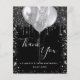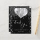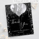 Ett tack för en 18:e (eller vilken ålder som helst) födelsedag. En chic svart bakgrund färg. Med faux silver glitter droppar, färgdroppstift och ballonger. På stora bokstäver och text framtill: Tack, text, titel och datum. Tillbaka: Anpassa och lägg till tackkort och namn.
