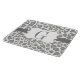 Glass skärbräda för för chic, modern nätt för kattleopard för vild djurt stort tryck i vit och grått som presenterar en grå rand och vit som kantas med det gråa banret som du kan skräddarsy med din initiala monogram!