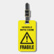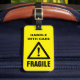 Böjlig handtag med varsam gult, varningskänslighetssymbol resande bagagemärkning. Utformning av Anpassningsbarnas etikett för resväskor, påsar och krossbara glasföremål. Personligens bagagetillbehör för manar, kvinnor och barn. Gult eller anpassadets bakgrund färg. Lägg till ditt eget namn, adress, försiktiga meddelande eller rolig text. Skriv ut på baksidan som tillval. Kan även användas för att transportera, skicka eller frakta stora försändelser.