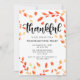 Thanksgivingens middagsinbjudan med ord "Tankfull" i manuskript och kalligrafi stil. Inbjudan är dekorerad med vattenfärgen höst löv foliage. En enkel och elegant Thanksgiving-inbjudan med vackert hösttema färg.