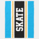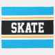 Den här sportetiska, atletiska designen har fet SKATE-text inuti ett markerat svart rand med dubbla vit och gult tävla ränder mot ljusblå yttre ränder i himmel. Texten kan vara personlig.