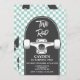 Skateboard 2:a födelsedagen inbjudan med blå check och skateboard.