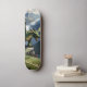 La patineta presenta un diseño impactante y llamativo, representando la figura de un dragón en una postura agresiva. La escena se desarrolla en un entorno que sugiere la presencia de un acantilado, lo cual añade un elemento de riesgo o emoción al contexto. La imagen que se forma mentalmente es la de un dragón imponente, con alas extendidas, garras afiladas y una expresión feroz, plasmado sobre la superficie de la patineta. Este diseño fusiona la estética del mundo fantástico y la naturaleza extrema del deporte de patineta, creando una combinación visualmente impactante y única.