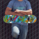 Skateboard är ett konstverk! Med sin klara och abstrakta utformning är det säkert att vrida huvudet när du kör ner på gatan. Inte nöja sig med en tråkig skateboard - ta dig ur folkmassan med den här färgstarka och öga-fångstdesignen! Hämta din idag.
