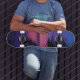Härlig skateboard med ett foto från Daytona Beach, FL-visning en blå himmel med en tropisk orange som är röd, och purpurfärgad solnedgång över floden med palmträd.