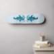 en dekorativ blandad massmediabläck- och gouachedesign av två stam- tatueringhajar eller orcas för turkos på en skateboard