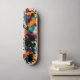 Skateboard-däcket visar ett djärvt, abstrakt stil med dynamisk stänk av orange, teal och lila mot neutraltens bakgrund. Perfekt för skater som kärlek vibrerar, ger uttryck för sin unika design och ger energi och kreativitet till varje pris.