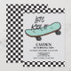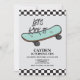 Skateboard Låt oss Sparka det, Birthday inbjudan med svart check och blå skateboard.
