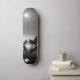 La patineta presenta un diseño específico, representando lobos salvajes. La escena evocada es de noche, con la presencia de una luna en el cielo. La combinación de elementos sugiere una imagen visualmente impactante, donde la silueta de lobos salvajes en la patineta se destaca en medio de la oscuridad nocturna, iluminada por la luz de la luna. Este diseño evoca un ambiente misterioso y salvaje, creando una sensación única para aquellos que observan la patineta.