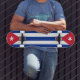 Ride med pride och stil med vår skateboard för anpassningsbar med Kuba som flagga! Den här skateboard är utformad med material och precision av hög kvalitet och är mer än bara en biet av utrustning. Den är en firande av den kubanska kulturen och arvet. Utformningen visningar på ett framträdande sätt Kubas flagga, med fem rand blått och vitt, med en röd triangel på den lämnat med en vit stjärna som symboliserar nationens frihet och oberoende. Oavsett om du kör på stadens gator eller fulländar dina knep i skateparken, tillför den här skateboard en äkta beröring av kubansk luft till din skjuts. Designad för hållbarhet och prestanda, säkerställer denna skateboard på Kuba jämna steg och noggrann kontroll, skapar den perfekt för både nybörjare och erfarna skater som vill visa sitt kärlek för Kuba med varje resa.
