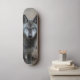 La patineta cuenta con un diseño inspirado en un perro lobo salvaje. El énfasis está puesto en las características del lobo como depredador y su naturaleza curiosa. Por lo tanto, la patineta presenta una ilustracion que representa la imagen de un lobo salvaje en actitud curiosa y depredadora. Este diseño se busca transmitir una sensación de fuerza, astucia y exploración, fusionando la imagen del lobo con la idea de la patineta, creando así un producto visualmente impactante y temáticamente interesante.