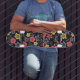 Skateboard, svart bakgrund och färgade blommor mini skateboard bräda 18,5 cm