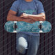 Rid vågar med denna häpnadsväckande blåhavsskateboard vågar. Perfekt för både nybörjare och erfarna skater. Den här tavlan kommer säkert att vända huvudet vid skateparken eller på stranden. Köp Zazzle på prsmodsbutiken.