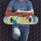 Skateboarddäck med en modern och färgglad illustration!