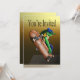 En ung sköldpadda som visar sin skateboardförmåga. "Du är inbjuden" står ovanför sköldpaddan. Visas på en övertoningsbrun bakgrund. Ett sött sätt att erkänna en pojkfödelsedag.