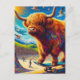 Skateboarding Highland Cow Colorful Roligt Surreal Vykort