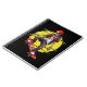 En slående utformning med ett skelett som är klädt i trendig, färgstarka band och röda bandana, som rider på en skateboard. Perfekt för skateboarder och älskare på skateboard.