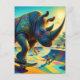 En söt, färglös, surrealistisk Rhino på en skateboard AI-genererad konst