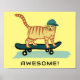 Skateboarding Tabby katt Cute ANPASSNINGSBAR TEXT Poster