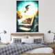 Denna dynamiska idrottskonst fångar spänningen i ett episk skateboardtrick, sveper över urbana trappor med filmisk ljus och explosiv rörelse. En djärv hyllning till skatekulturen, den blandar geometriskt flöde, levande färger och gatuenergi, vilket gör den perfekt för skateboardåkare, samlare och urbana konstälskare.