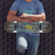 Un design sportif et épuré pour ce skateboard imprimé d'un graphitti sur une planche de bois usée peinte en bleu , des lignes simples mais efficaces . Le cadeau idéal pour tous les skateboarders fläkt de Sport extrêmes.