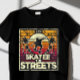 Här är en annan trending vintage-stil t-shirt-design med en retrosolsprängare, handflatan träd, en skateboarder mitt i tricket och frasen "Skate the Streets" 🛹 🌴.