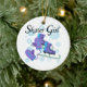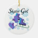 Vår Skater Girl-design T-shirts, mugg, påsar, kort, kuddar, väggur, keepsakes, hoodies och andra ledade temaobjekt har ett par blåa och lavender-skridskor och halvor på en sträng omgiven av många vintrida snöflingor och text som läser Skater Girl!