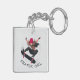 Hämta den ofruktlösa energin hos en skater flicka i rörelse med den här nyckelkedjan. Med en dynamisk utformning av en skater mitt i tricket - hårflytning, snärtning av tavlor och attityd till fullt - är detta tillbehör perfekt för alla som lever på kant. Perfekt sätt att lägga till en spark med coola till nycklar, ryggsäck eller skifferväska.