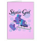 Våra T-tröja för skaterflickadesignen, muggar, hänger lös, cards, kudder, tar tid på väggen, minnessaker, hoodies, och andra åka skridskor temaobjektsärdrag en para av blått och lavendelskridskor och mittens på en stränga omgav av wintry snöflingor och text för raddor som läser skaterflickan!