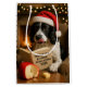 Individuellt designad julklapp med en svart och vit spanjor som läser bok med titeln "Cheese Tax at Home Regulations 2025". Vi vet alla att ostskatten måste betalas - regler är regler!