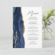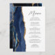 Den moderna bröllop-menyn i elegant har en marin blå vattenfärg som ruttnar gräns med faux guld glitter. Anpassadet kombinerar handskriftsskript för kol-grått och sans serif typsnitt på vit bakgrund. Den marinblå och guld-agatkonstruktionen upprepas på motsatt sida.