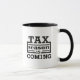 Denna utformning är perfekt för skatterevisorer och skattebetalare. Den innehåller texten "Skattesäsongen kommer". Det är perfekt under beskattningssäsongen runt den 1 januari till den 15 april.
