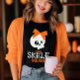 Familjematchande Halloween-skjortskjortans skjorta har orange av "Skele Quad" och vit text med ett sött skelett med bockaccent. Skaka benen och beställ varje medlem i din grupp!
