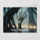 En skeletthand med 6 finger når ut från vatten i en träsk. Etheral ljus tillför extra ambians till den läskiga scenen. "Happy halloween!" är skrivet med ett benteckensnitt och är anpassade. Det här vykortet är perfekt för att önska en älskad en "Happy halloween" eller skicka som inbjudan till en Halloween fest! (A.I. genererad)