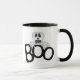 Scary Halloween tote bags, T-shirts, mugg, magneter, knappar och annat med en skalle och handben som håller fast vid text med texten "BOO"!