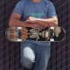 Släpp loss din djärva sida med den här whimsical-skateboard som har ett skelett som klämts under en intensiv stormig himmel. De muterade och beiges framkallar retro nostalgi medan de utlöser intrigue. Perfekt för att skapar en påstående i skateparken eller dekorera dina väggar. Den här designen erbjuder en unik skevning på klassiska artister. Stanna snyggt, och låt stormen inspirera dig!