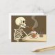 Skeleton Drinking Coffee Art Vykort